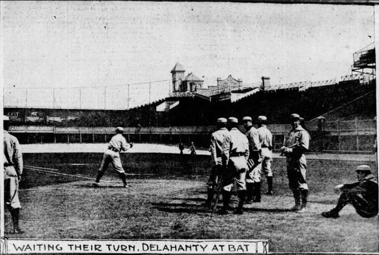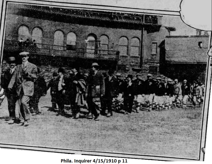 Other items discussed were Bill Killefer (1915 Phils catcher) and the additional outfield seating in “Baker Bowl”. To our knowledge, no known staged image exists of Killefer and Alexander together, in uniform, while with the Phillies. Seamus asked if anyone had any images of the outfield seats at Baker Bowl. Those images are below. Each show the “hanging gardens” that once existed on the outfield wall. Fans were able to walk around the entire ballpark via walkway, on top of the wall, which connected the first base bleachers and left field bleachers.