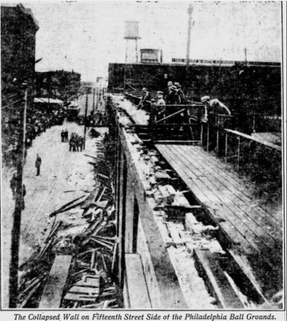 For more on the collapse and aftermath see “Baseball’s Deadliest Disaster: Black Saturday in Philadelphia” by Robert Warrington in the 2013 The National Pastime.