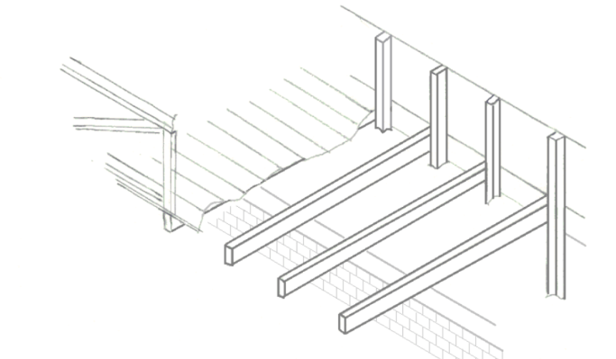 Weaver pointed to the decision to cover the joists with tin as a major cause of the failure. The nail holes widened as the structure flexed allowing the water to seep under the tin, holding it there and rotting the beams.