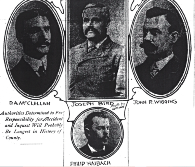 The Coroner’s inquest commenced August 18th in front of a surprisingly small crowd. After establishing the identity of the deceased the inquest moved onto witness testimony. First was the builder R. C. Ballinger. Most of the newspapers noted the familiarity with which the builders on the jury addressed him. Ballinger could not produce the plans of the structure claiming they had been destroyed during construction. He testified he built the stand under a commision agreement to pay Ballinger & Co. 7 ½ per cent of the total cost. Unlike the Pavilion, the plans for the bleachers were drawn by the builder, instead of an architect.